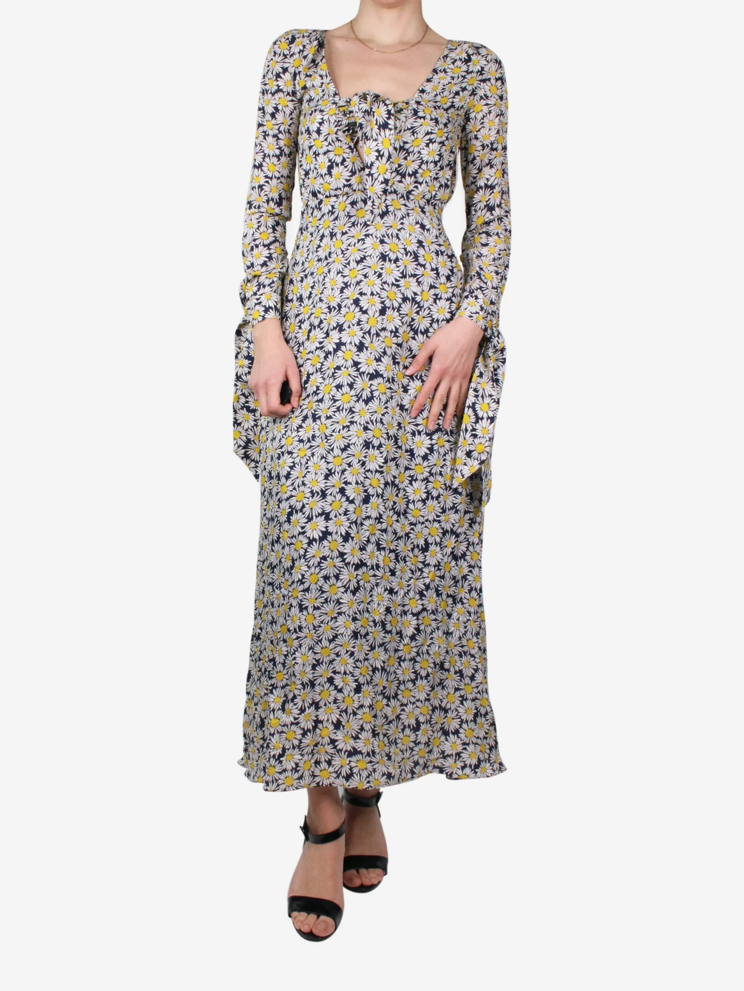 Borgo De Nor blue daisy midi dress, with tie sleeves.x000d