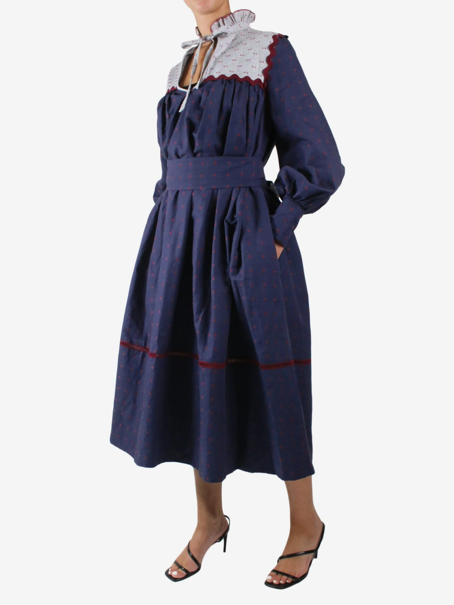 Wiggy Kit blue fil coupé long sleeve dress, with belt. x000d