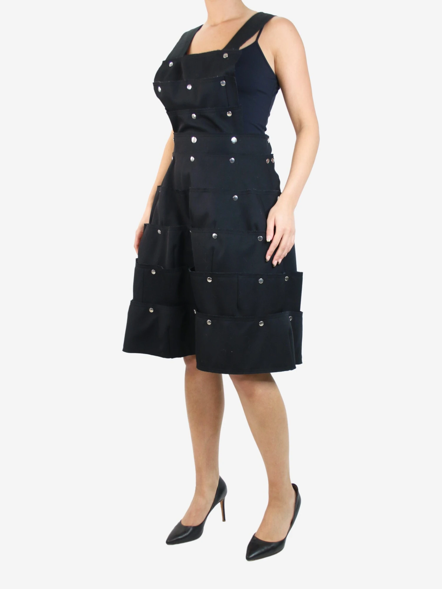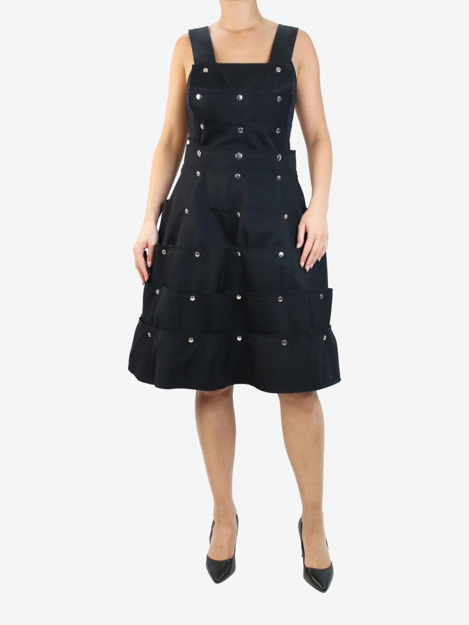 Comme Des Garçons black tiered snap-button dress.