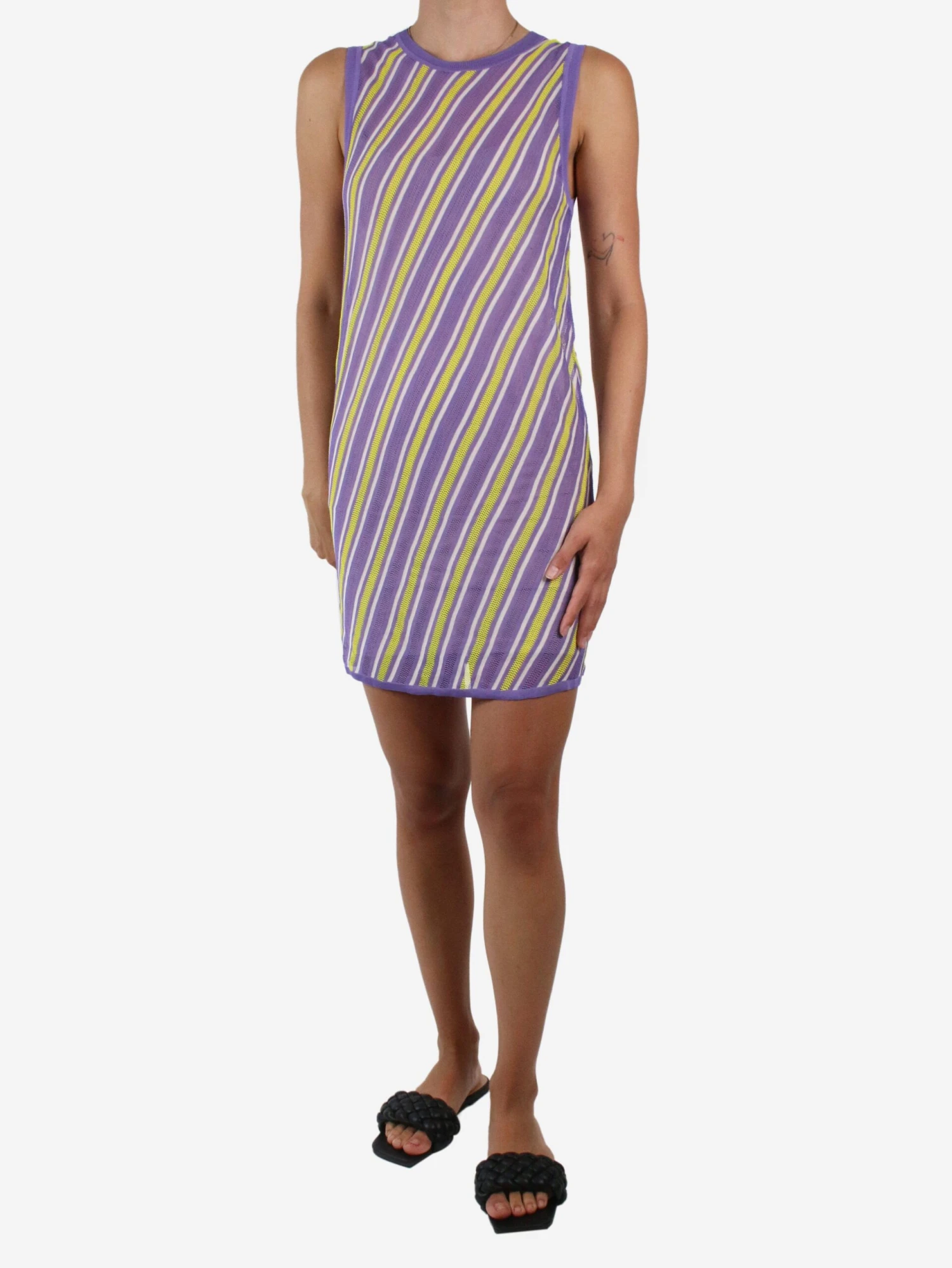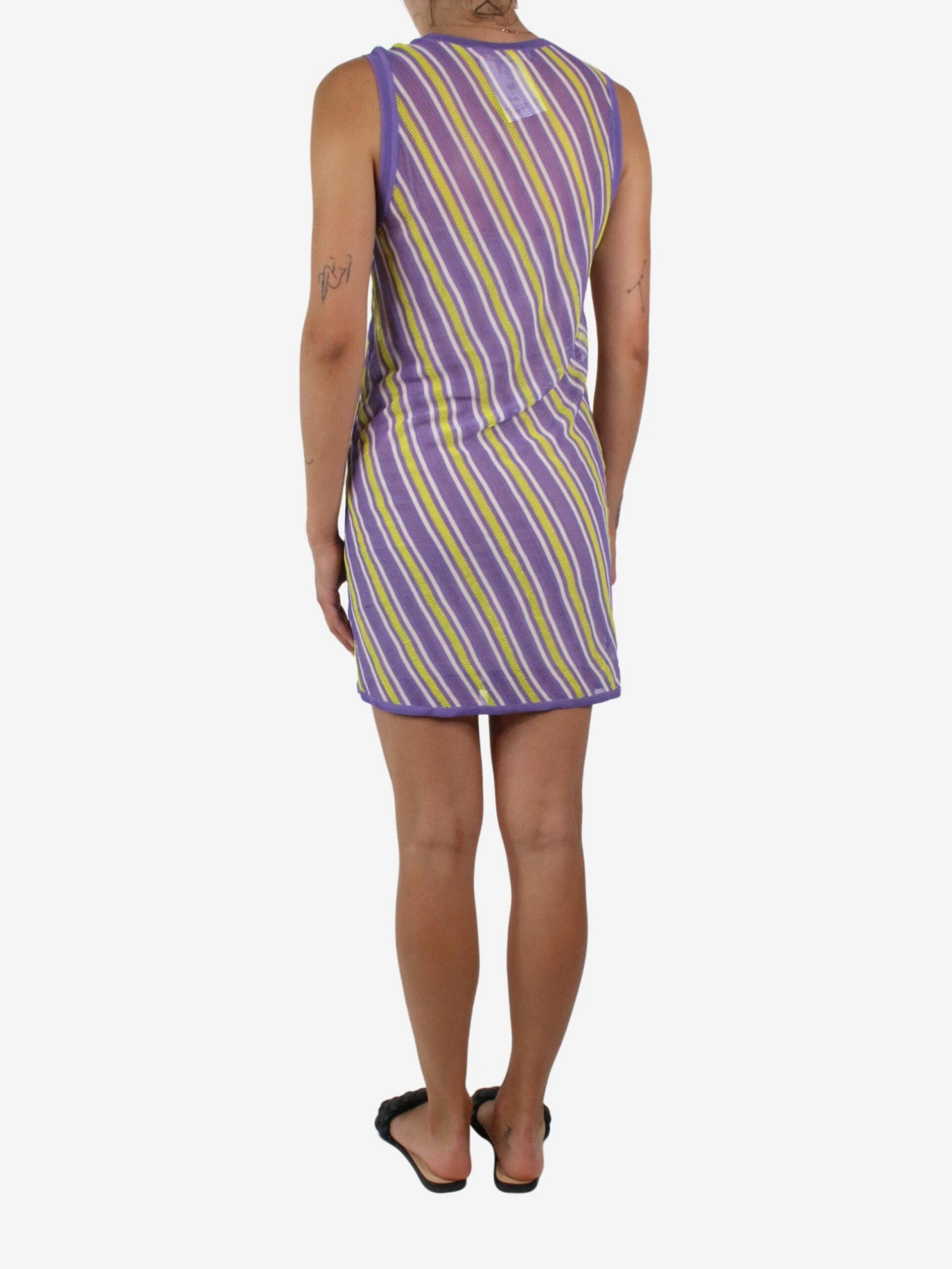 Diane Von Furstenberg purple and yellow sleeveless striped dress. x000d