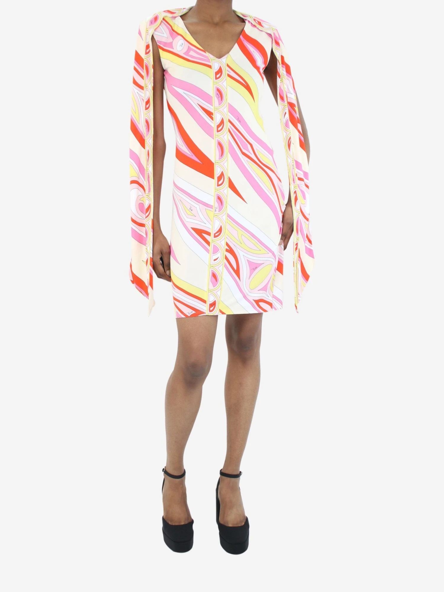 Emilio Pucci Multi Sleeveless Printed Tie Neck Dress – Size UK 8