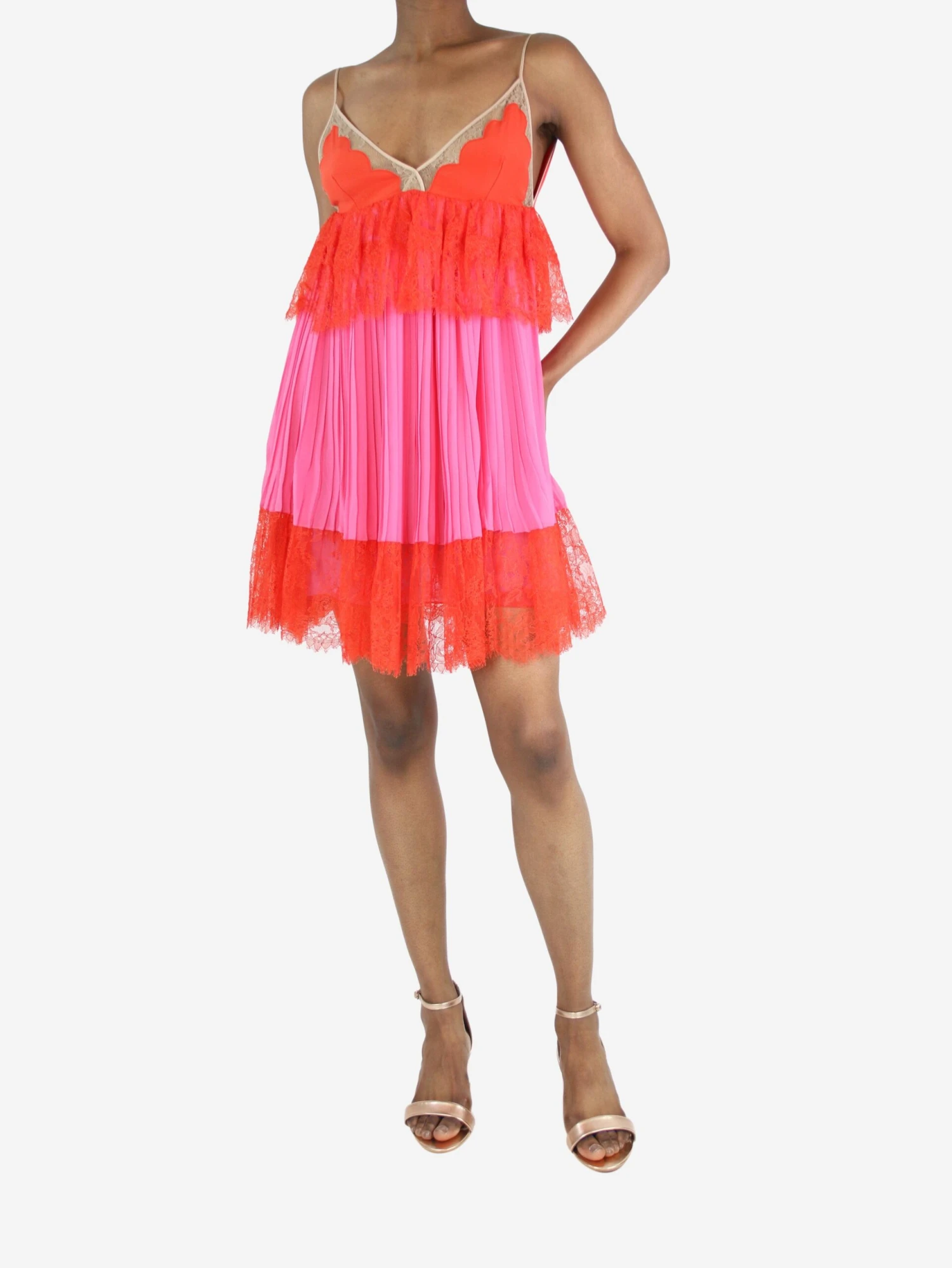 Emilio Pucci red and pink lace-trimmed mini slip dress.