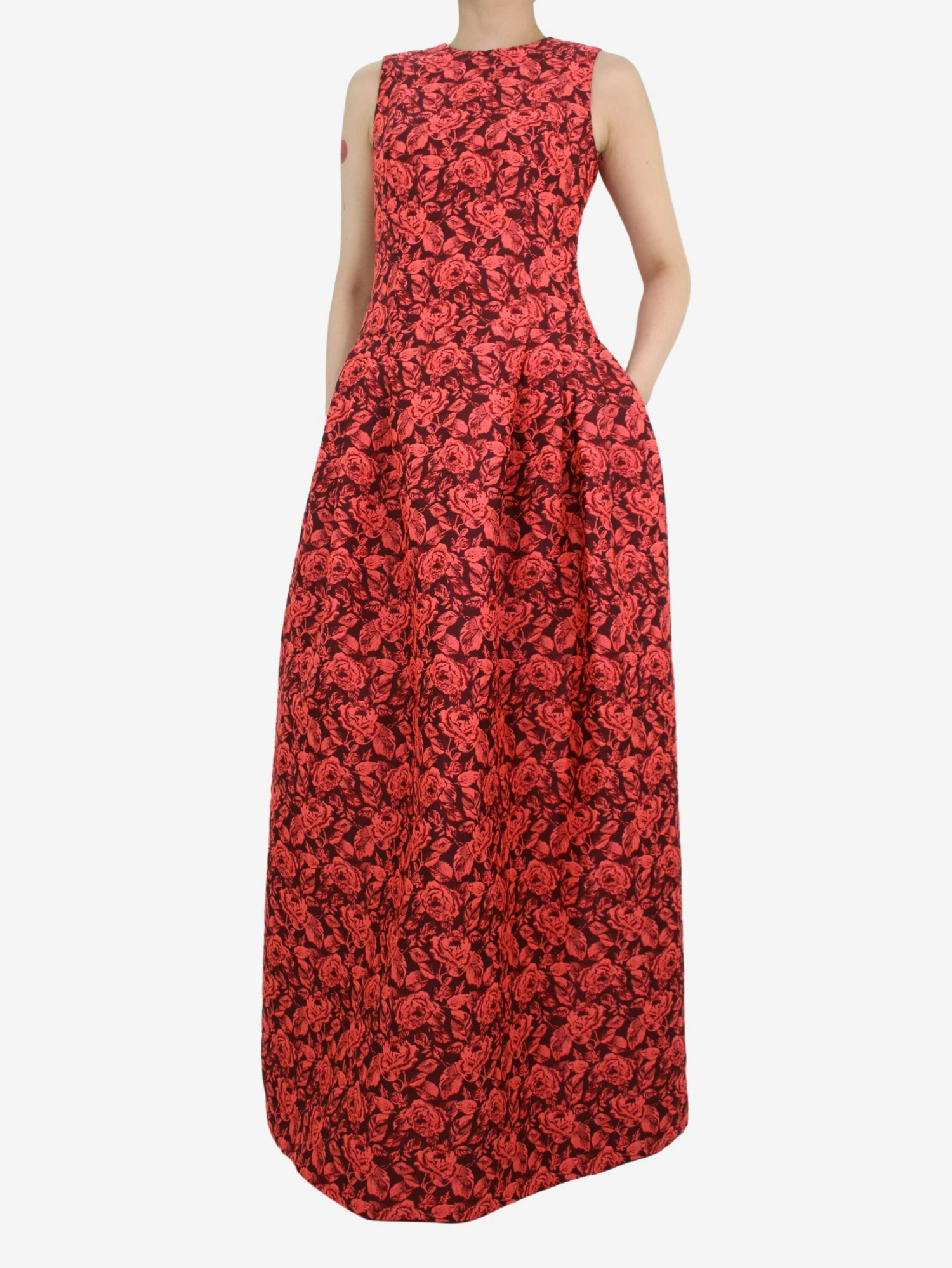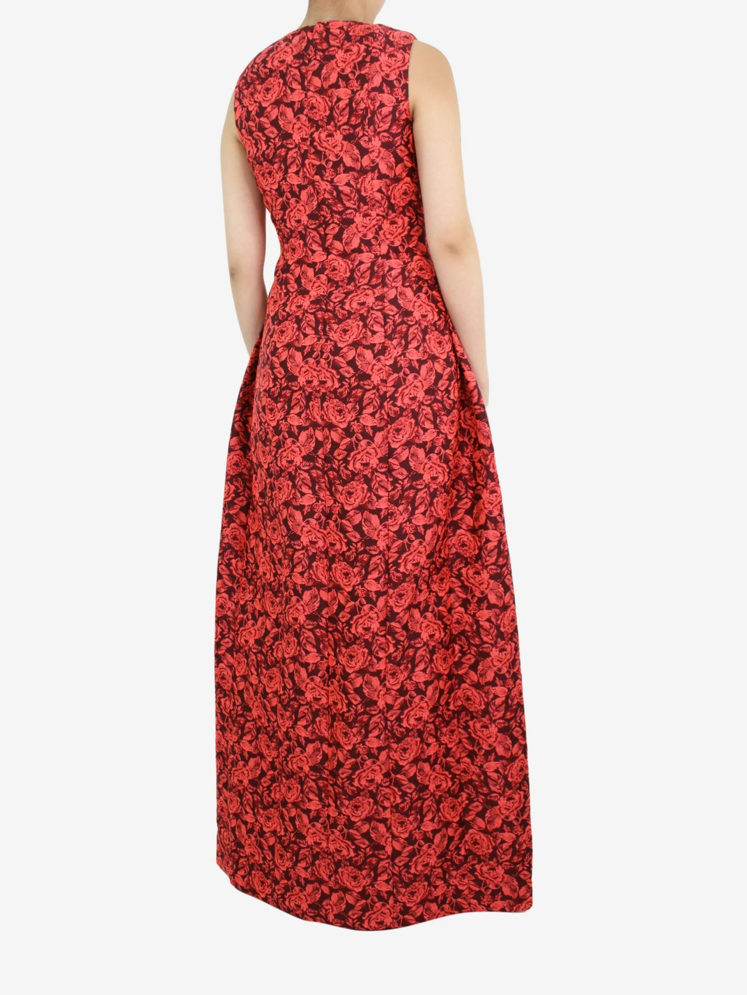 Erdem burgundy and pink sleeveless floral jacquard dress.