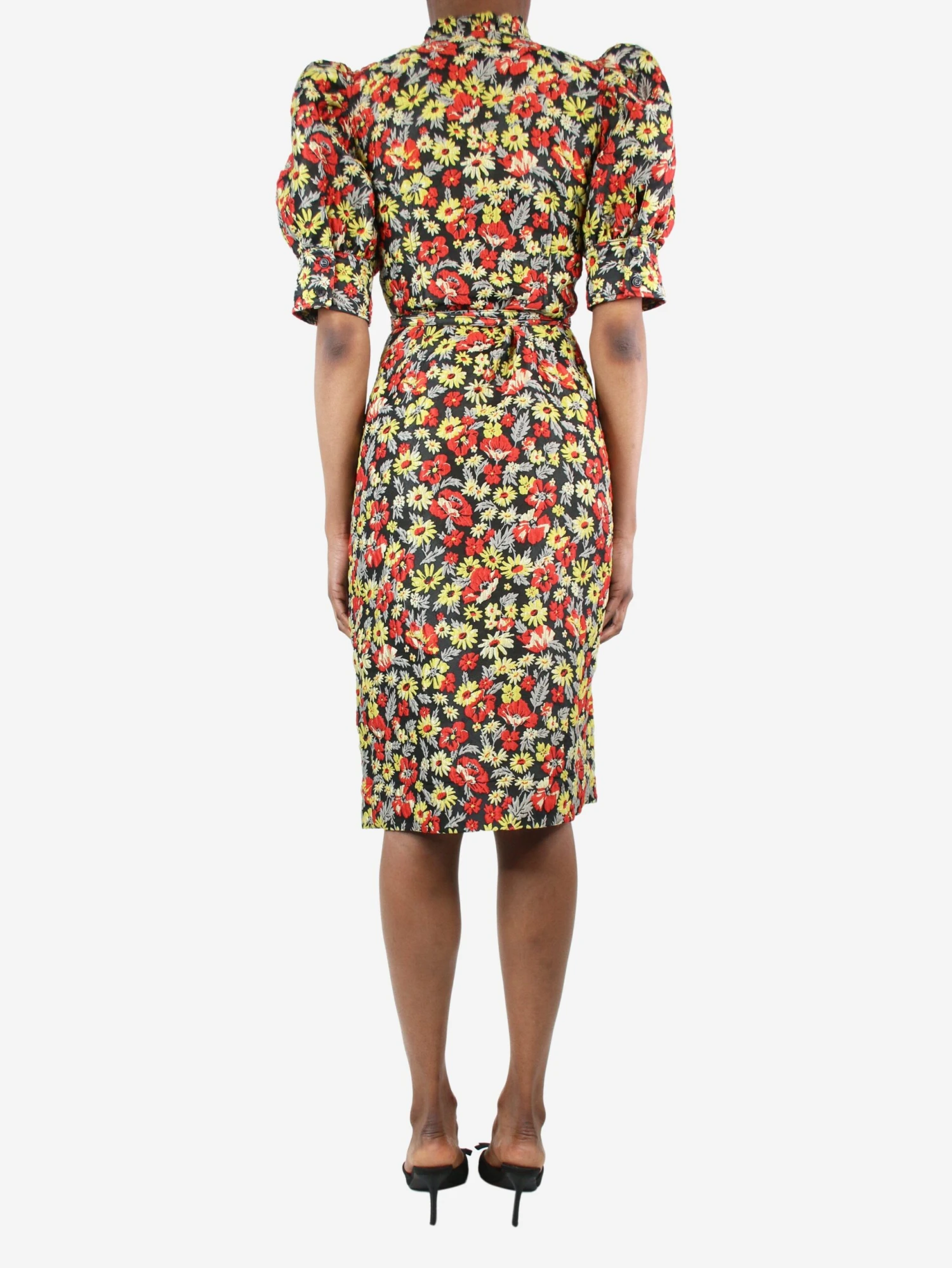 Ganni multicoloured puff-sleeved floral-printed midi dress.