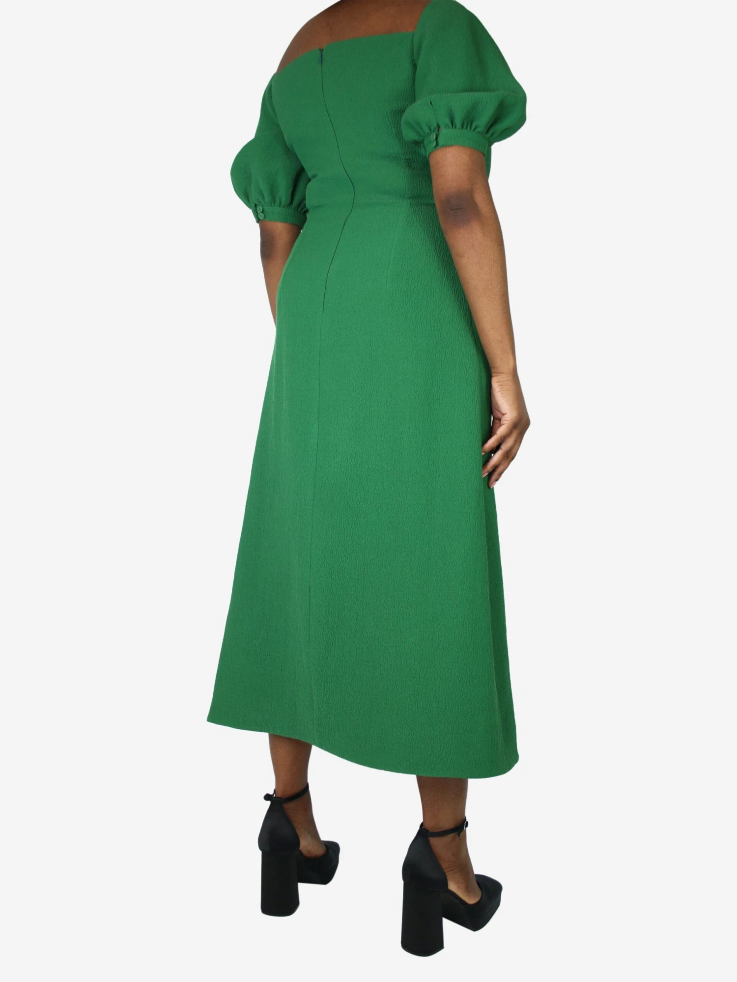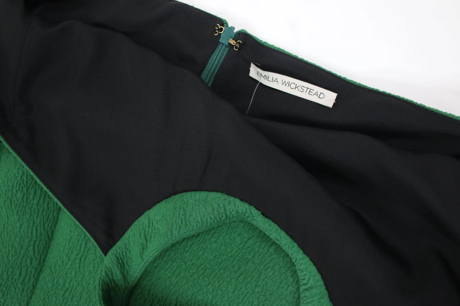 Emilia Wickstead green short-sleeved halterneck crepe dress.