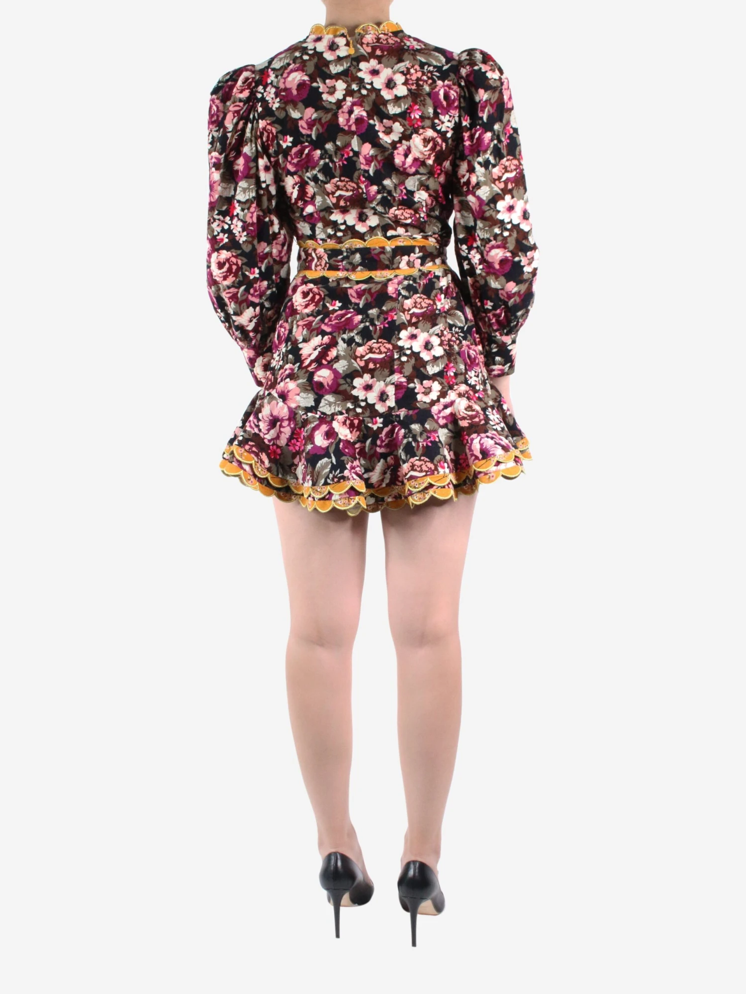 Celia B multicoloured corduroy floral printed dress with an embroidered trim. Comes with belt.