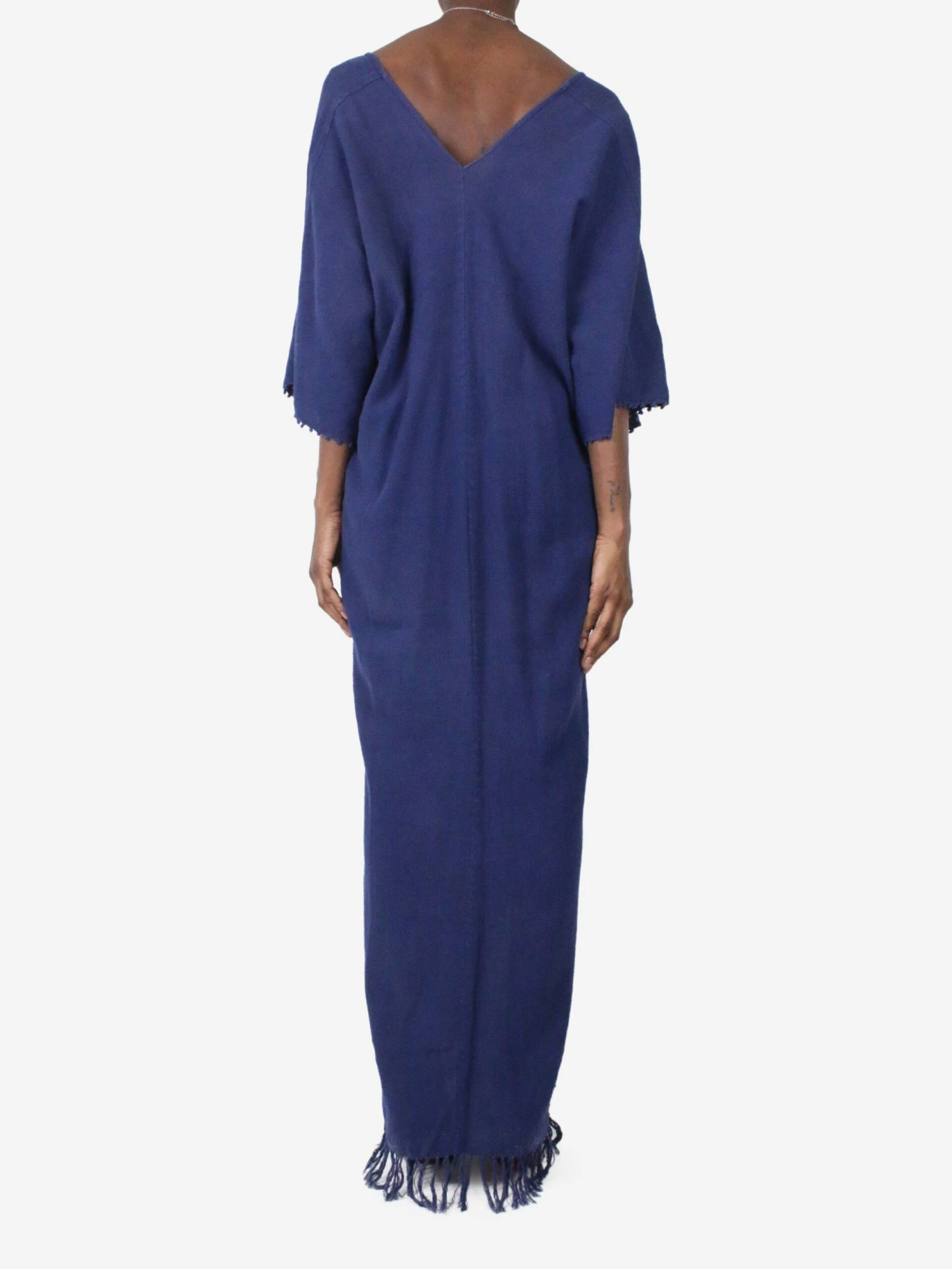 Caravana navy kaftan style maxi dress with tassle detailing.
