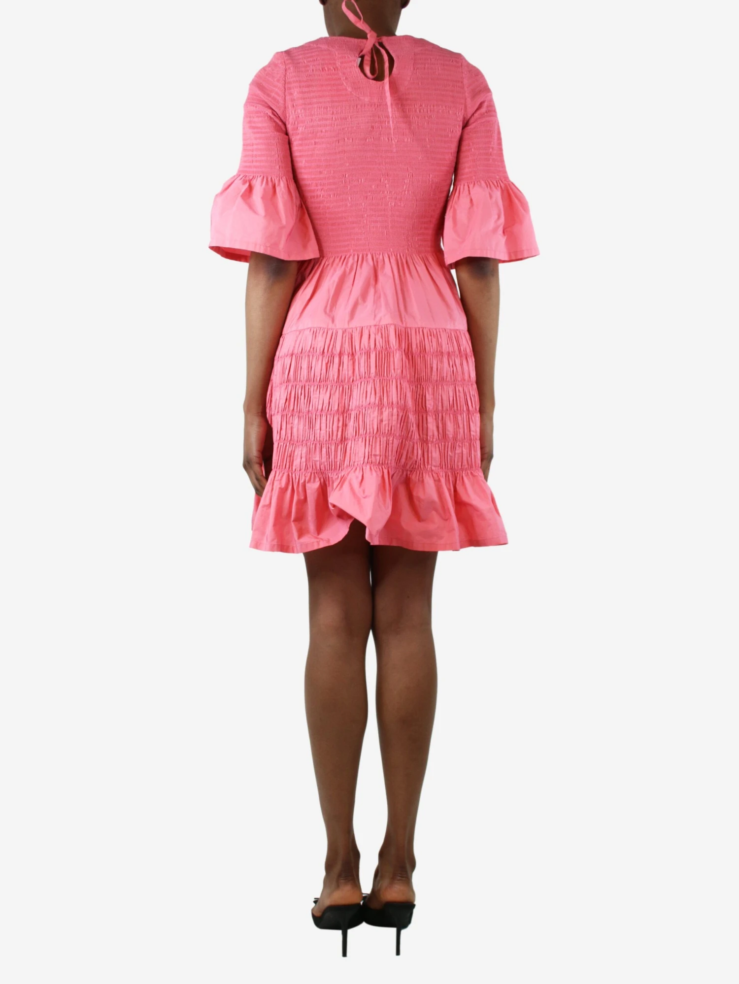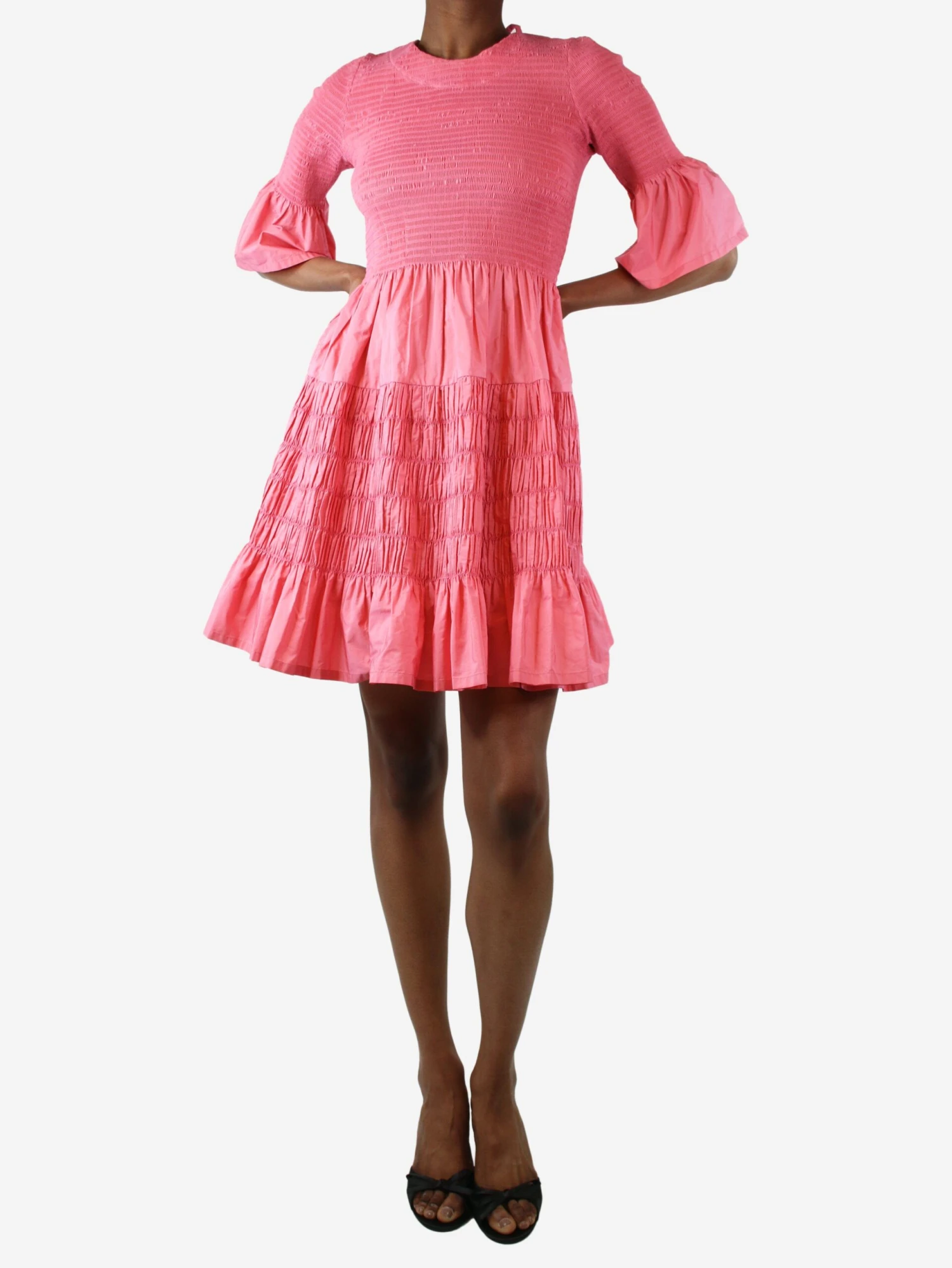 Molly Goddard pink smocked dress with flared sleeves and an A-line skirt.