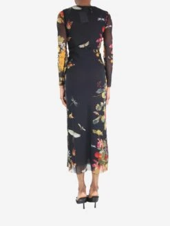 Jean Paul Gaultier Black Floral-printed Mesh Midi Dress – Size S