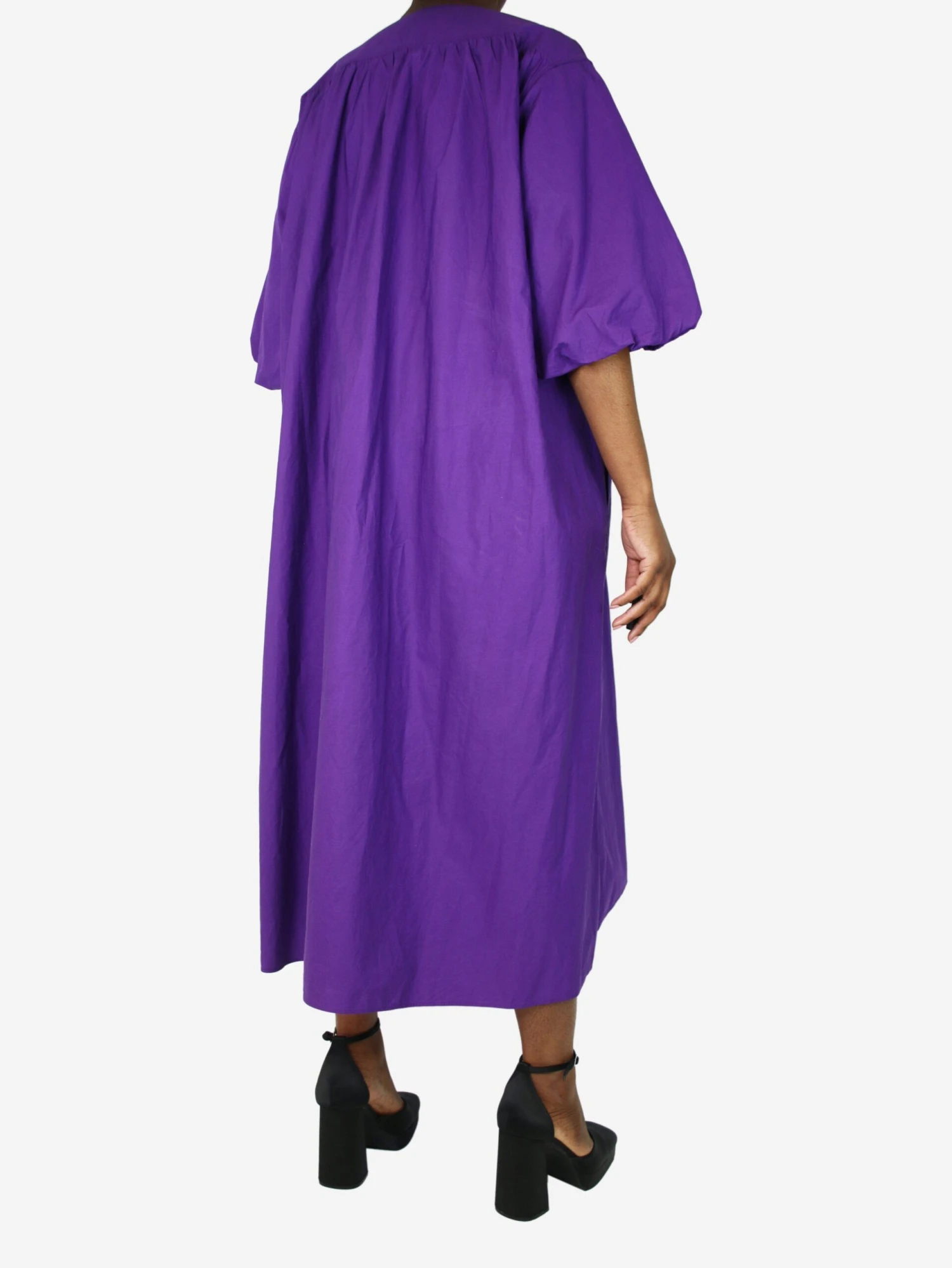 Sofie D’Hoore purple puff-sleeved v-neck dress.