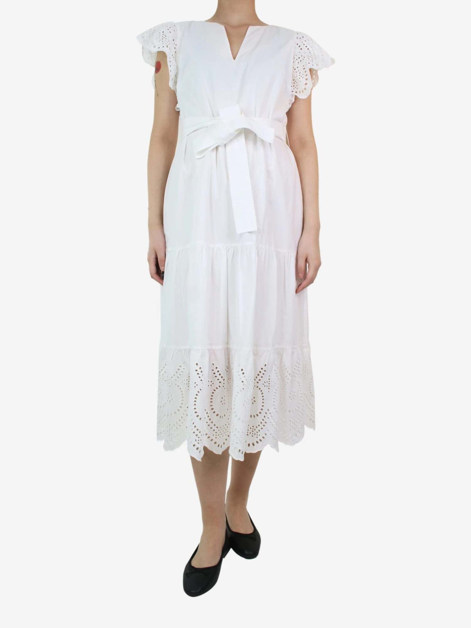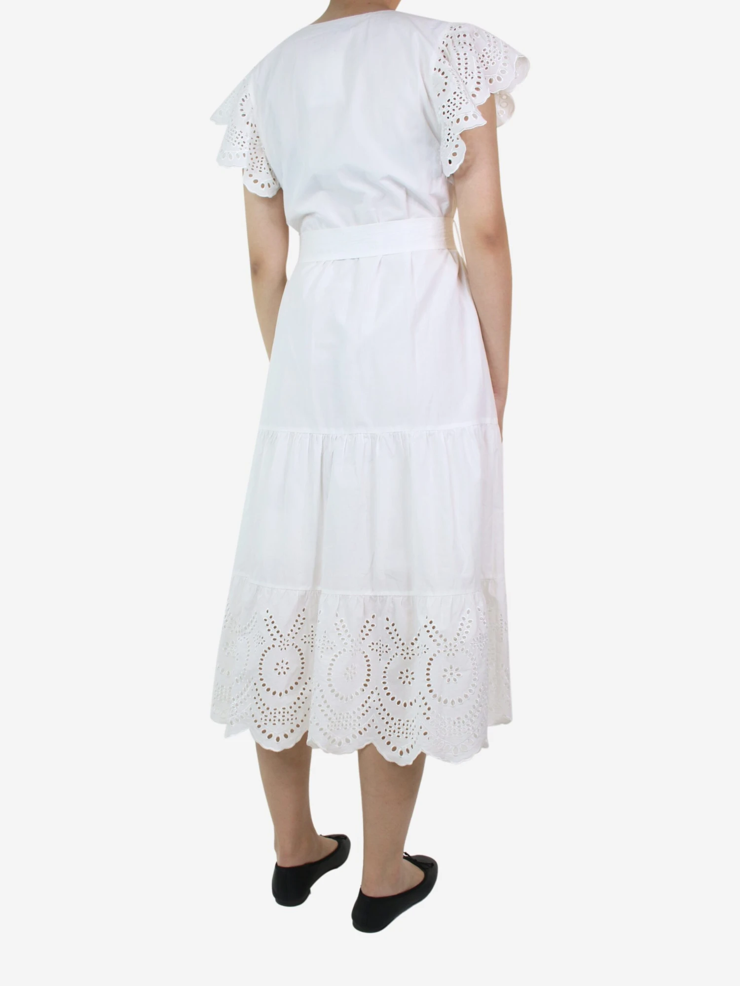 Rails white short-sleeved embroidered midi dress.