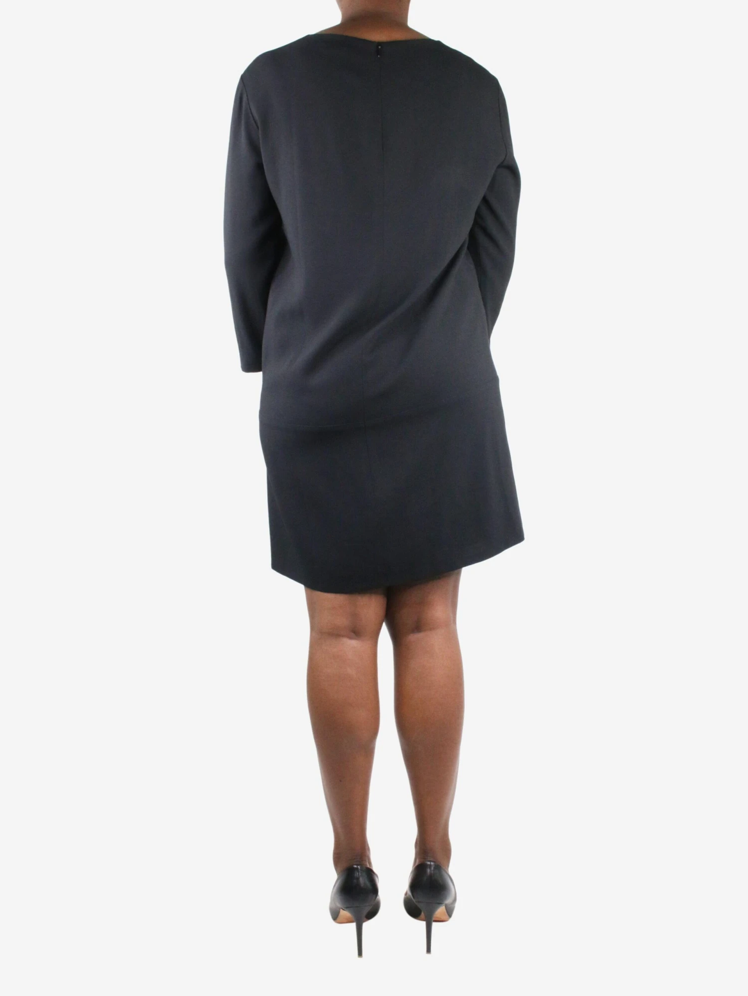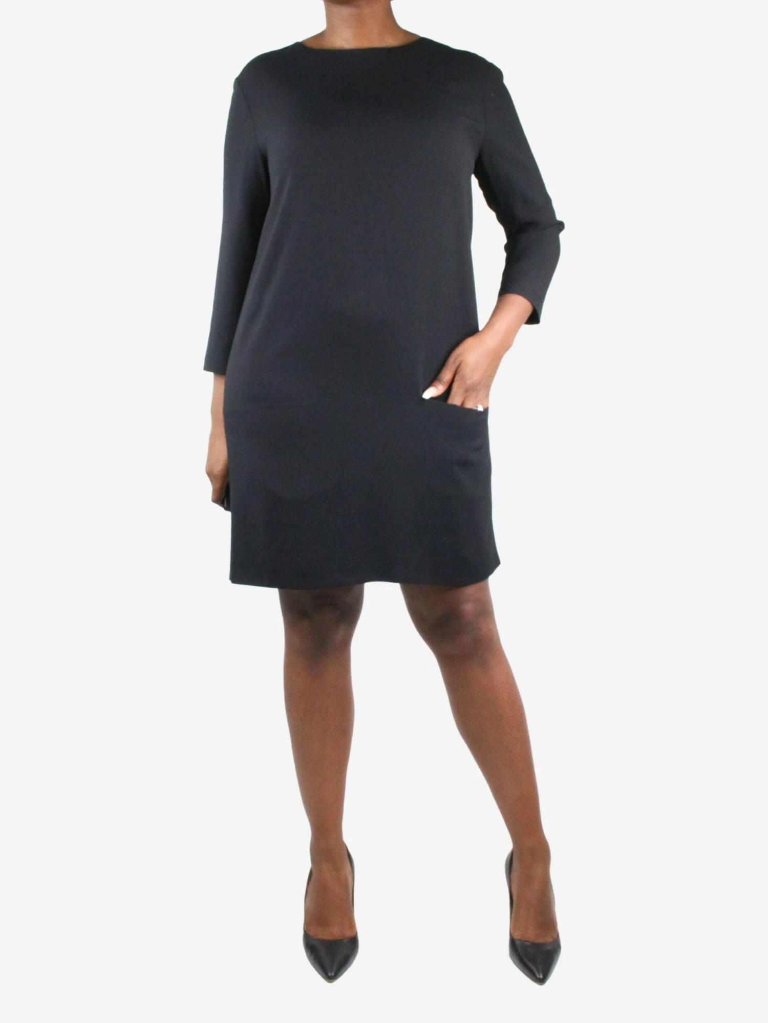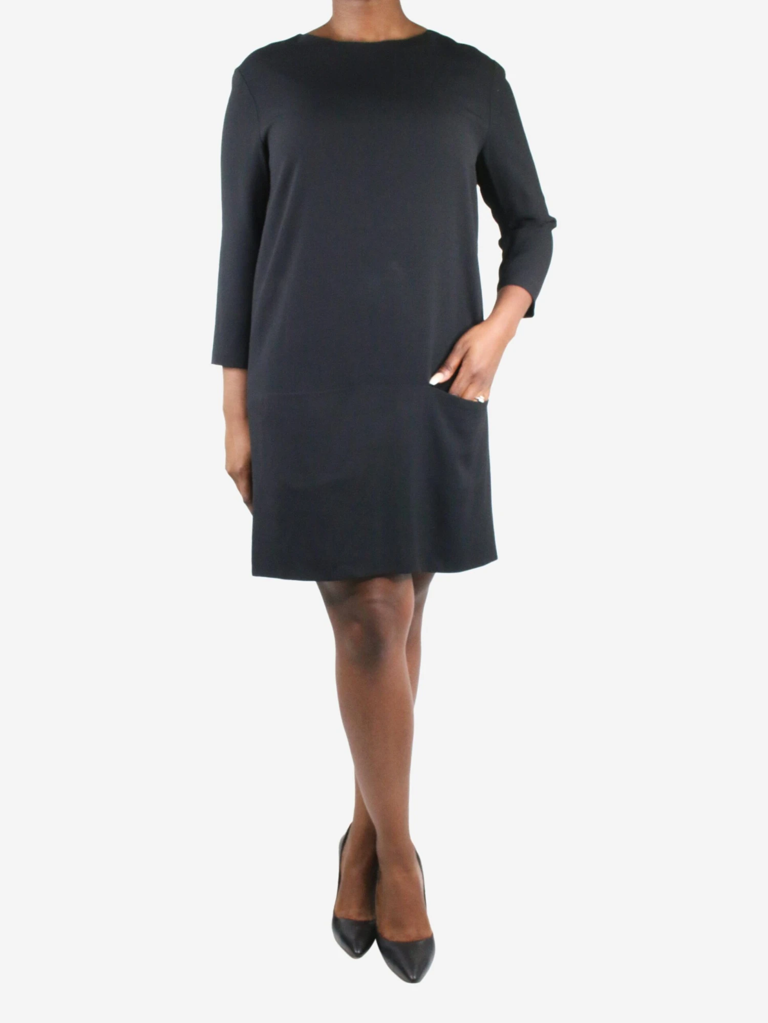 The Row black round neckline pocket dress.
