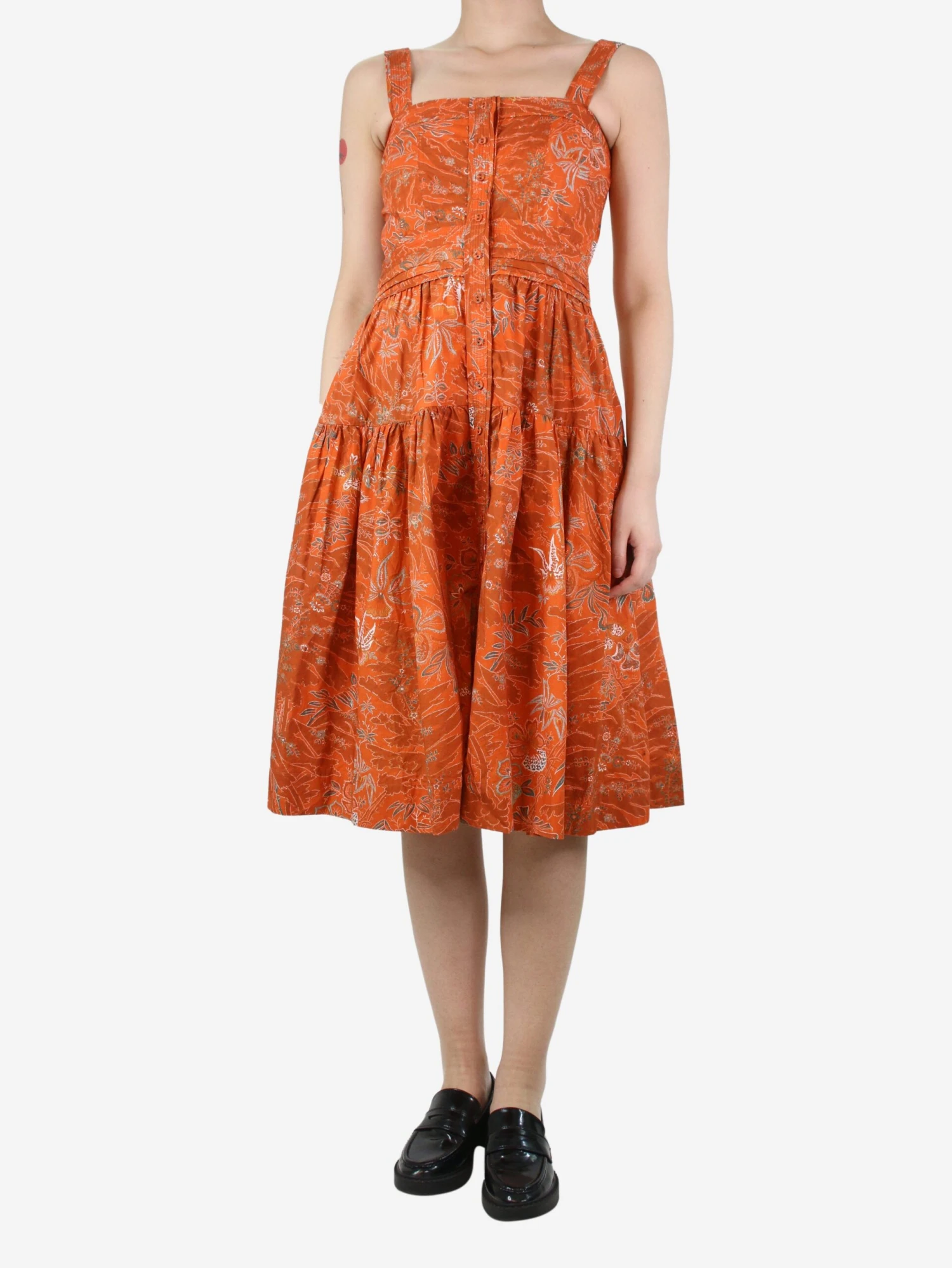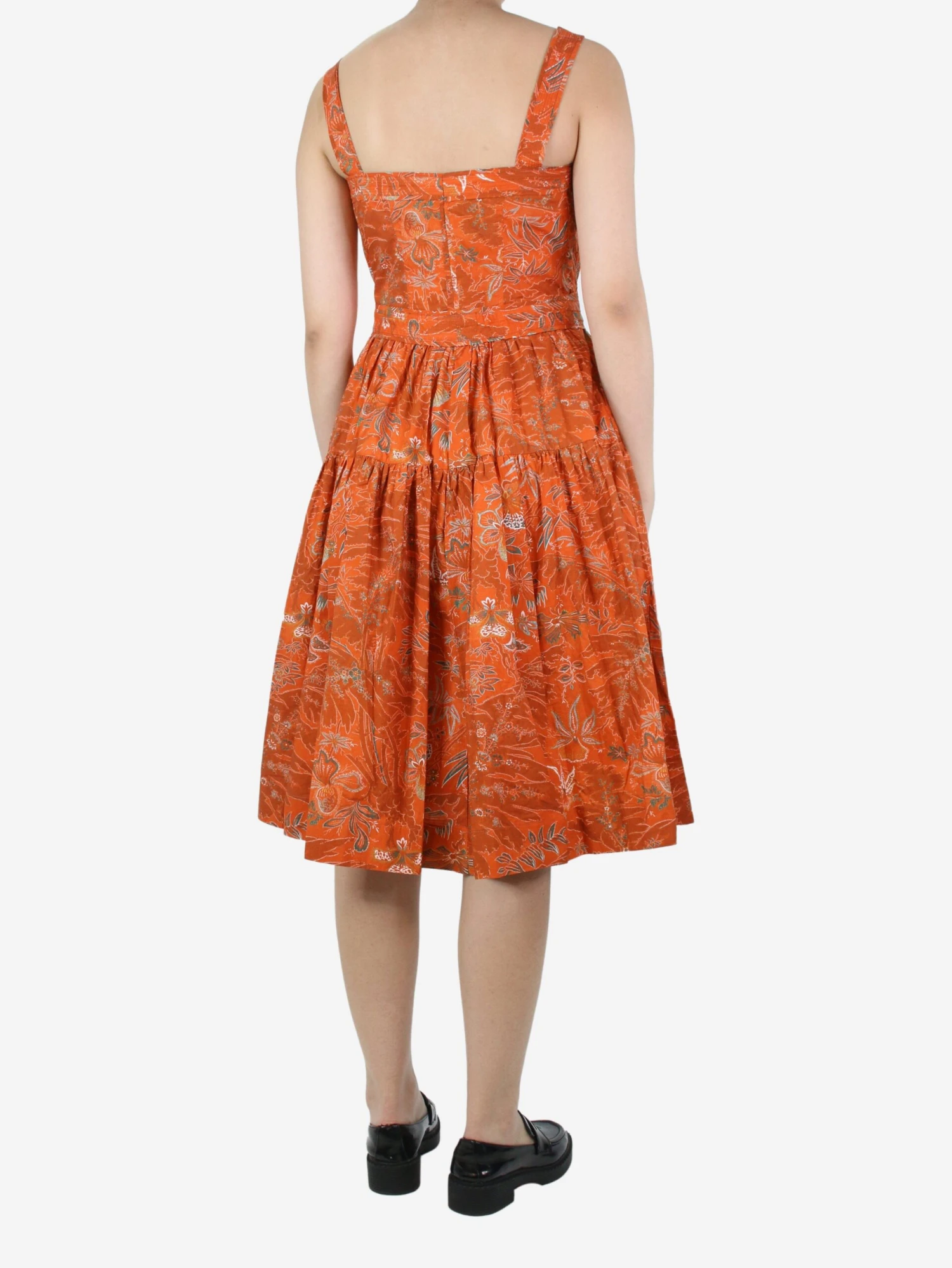 ULLA JOHNSON Orange Floral Printed Strap Dress – Size UK 8