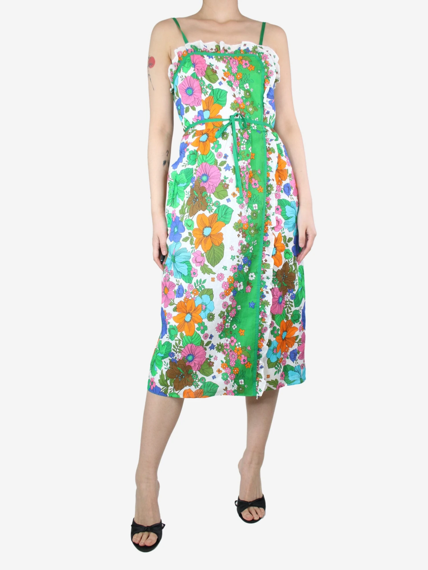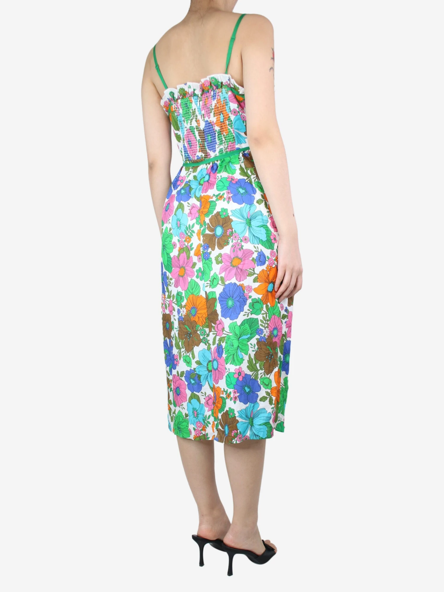 Zimmermann multicolour floral printed ruffled midi dress with a side slit.